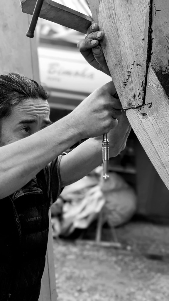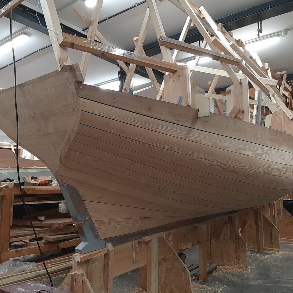 Simon joined the 40 week boatbuilding course at the Boat Building Academy in Lyme Regis in 2020, in order to focus on traditional wooden boatbuilding. There he was part of a small team building 16′ spritsail yawl Wild Boy; a replica of a 19th century Gorran Haven crabber, carvel planked in larch on steamed oak frames.